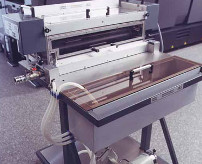 Mit dem Servicewagen, welcher Bestandteil des Lieferumfangs eines LACO Lackierwerkes ist, läßt sich ein LACO Lackierwerk schnell und einfach in die Druckmaschine ein- und ausfahren.